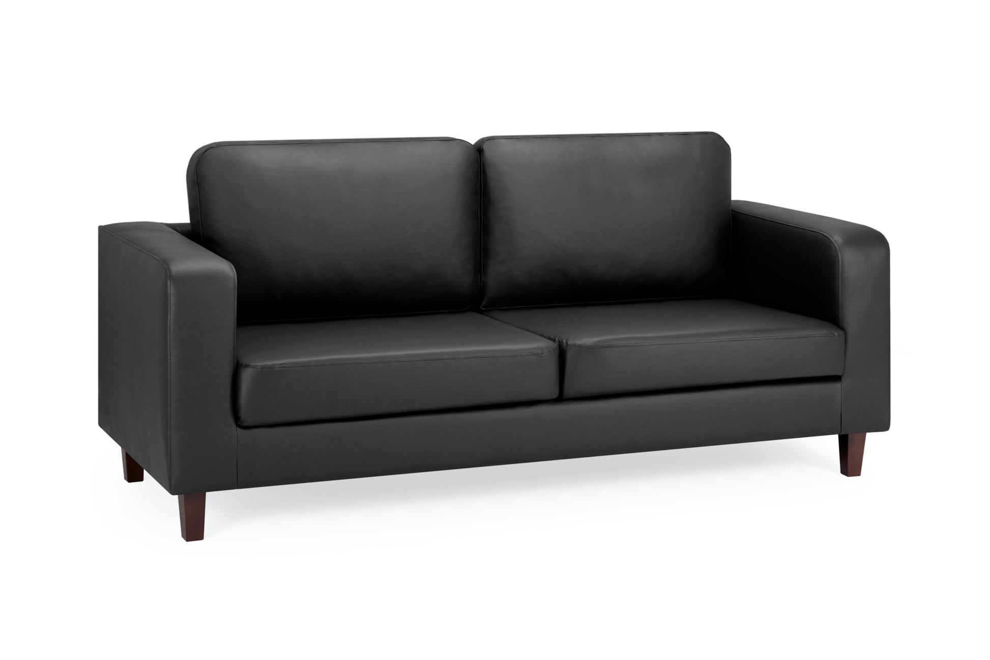 Compact and simple, ‘Sofa in a Box’ is exactly what it is. Upholstered in a faux leather and paired with dark wood legs make this a sleek and modern design. Available in Black PU and Grey Fabric. A popular choice for accommodations and rentals.