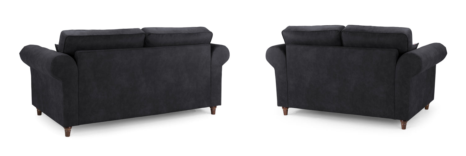 The Oakland range is upholstered in a soft suede-like fabric, with large scroll arms and button detailing, this brings class to any room with its striking British design